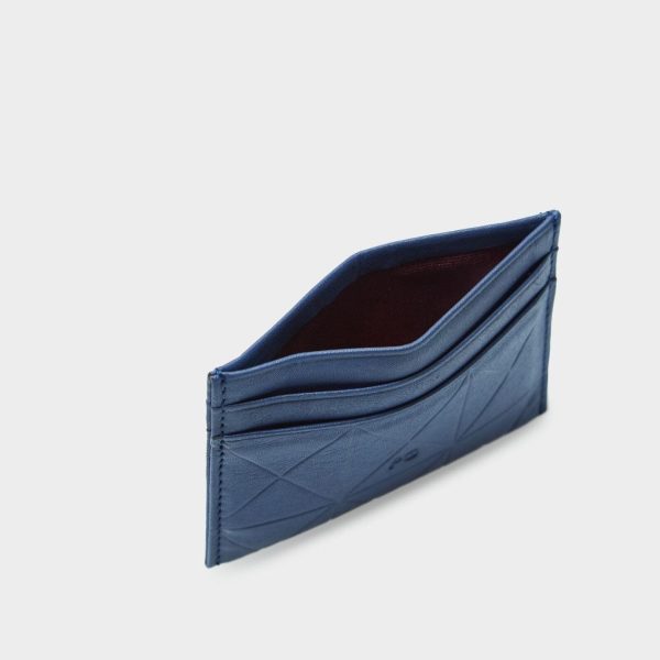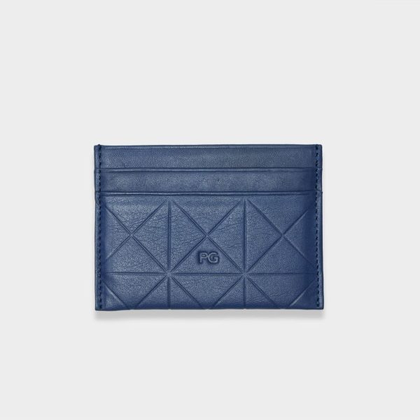 Leather card holder embossed with the PG cube pattern and detailed with contrasting stitching.