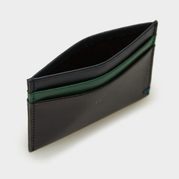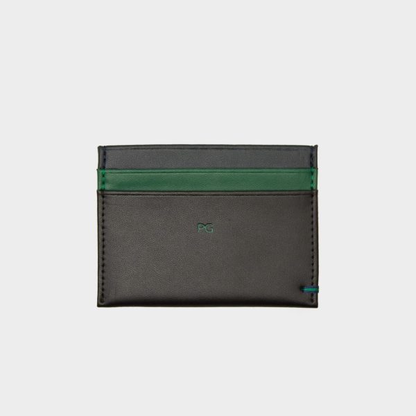 Three-tone card holder in leather embossed with the PG logo.
