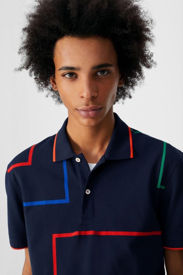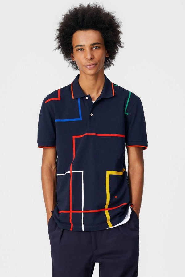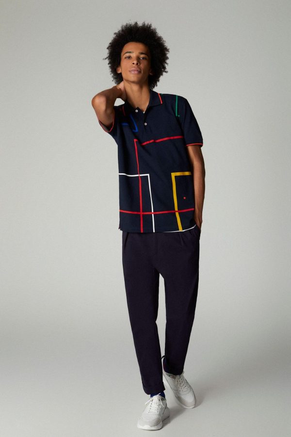 Regular fit polo shirt in cotton piqué with outlined cubes print. Two-button fastening, short sleeves and side vents. Embroidered PG cube at the chest. Model is 184 cm | 6″ and is wearing a size Small.