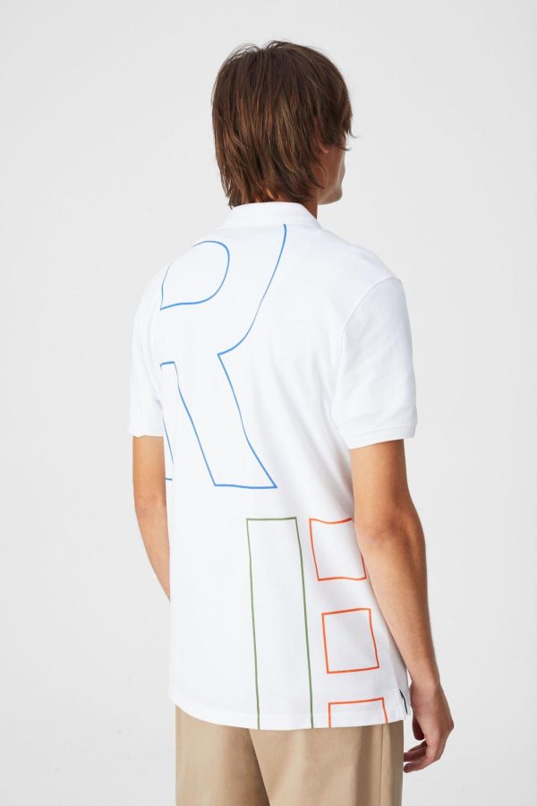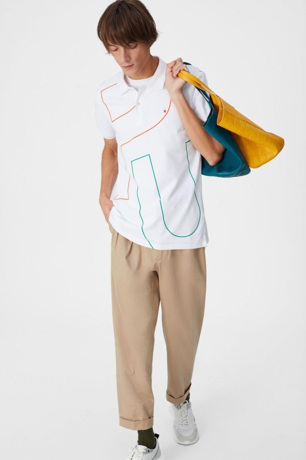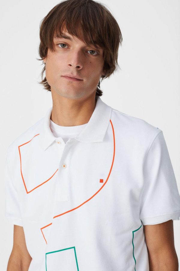 Regular fit polo shirt in cotton piqué with a PURE print and contrasting trims. Two-button fastening, short sleeves and side vents. Model is 186 cm | 6′ 1″ and is wearing a size Medium