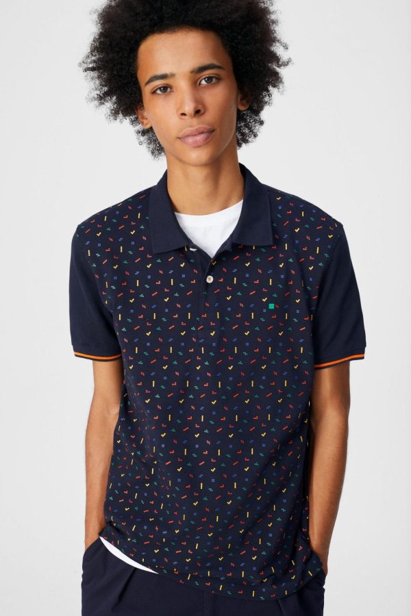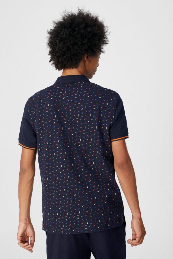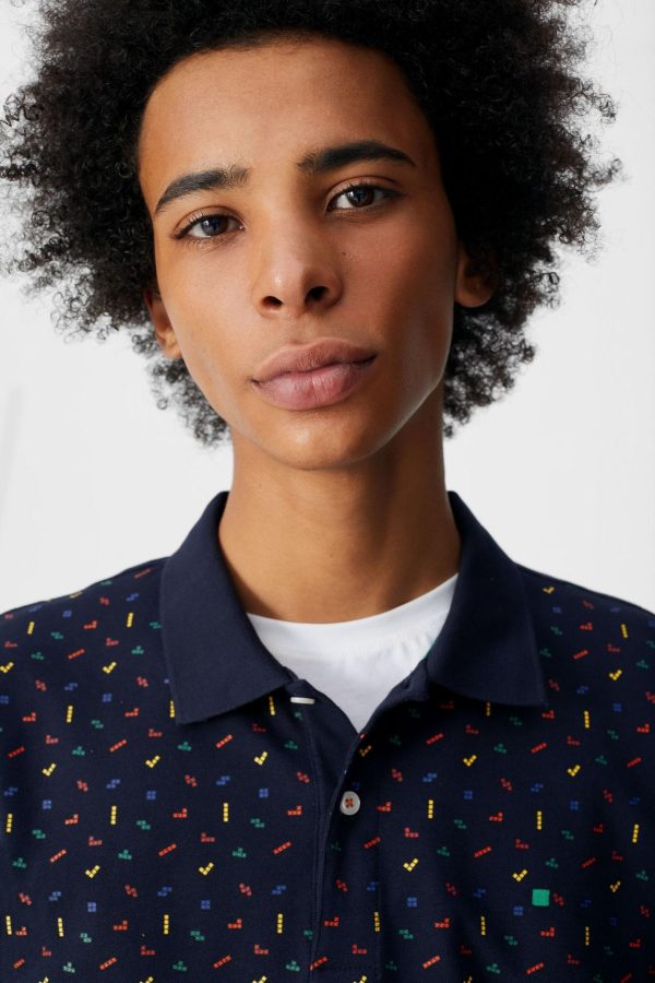 Regular fit polo shirt in cotton piqué with geometric print. Two-button fastening, short sleeves and side vents. Embroidered PG cube at the chest. Model is 184 cm | 6′ and is wearing a size Small.