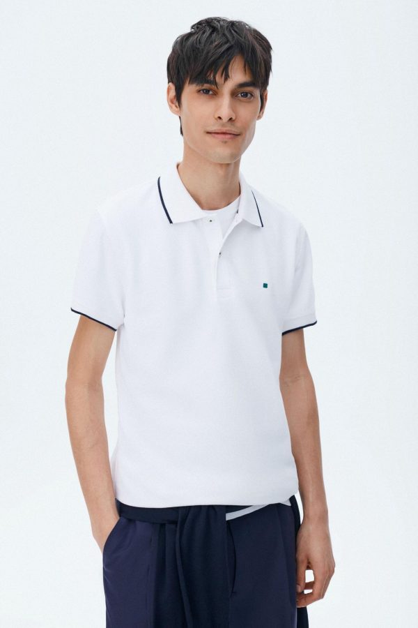 Regular fit polo shirt in cotton piqué with contrasting trims. Two-button fastening, short sleeves and side vents. Embroidered PG cube at the chest. Model is 187 cm | 6′ 2″ and is wearing a size Medium.