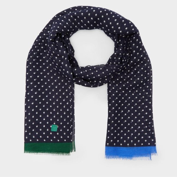Men Purificación García Scarves & Hats | Polka Dot Linen-blend Scarf Navy/green quantity