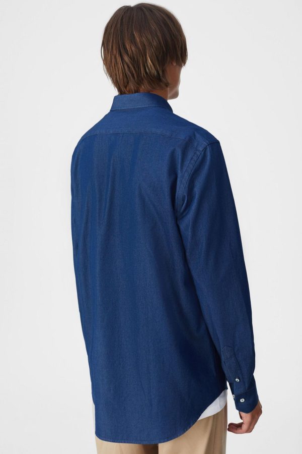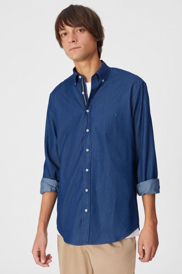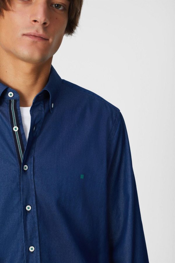 Regular fit shirt in cotton denim with grosgrain-detailed plackets. Button-down collar and embroidered PG cube at the chest. Model is 186 cm | 6′ 1″ and is wearing a size 4.
