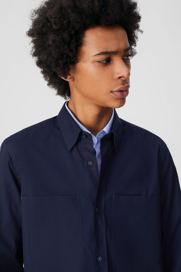 Cotton poplin overshirt with patch pockets and multicolour button-threads. Button-down collar and embroidered PG cube at the front. Model is 184 cm | 5′ 9″ and is wearing a size Medium.