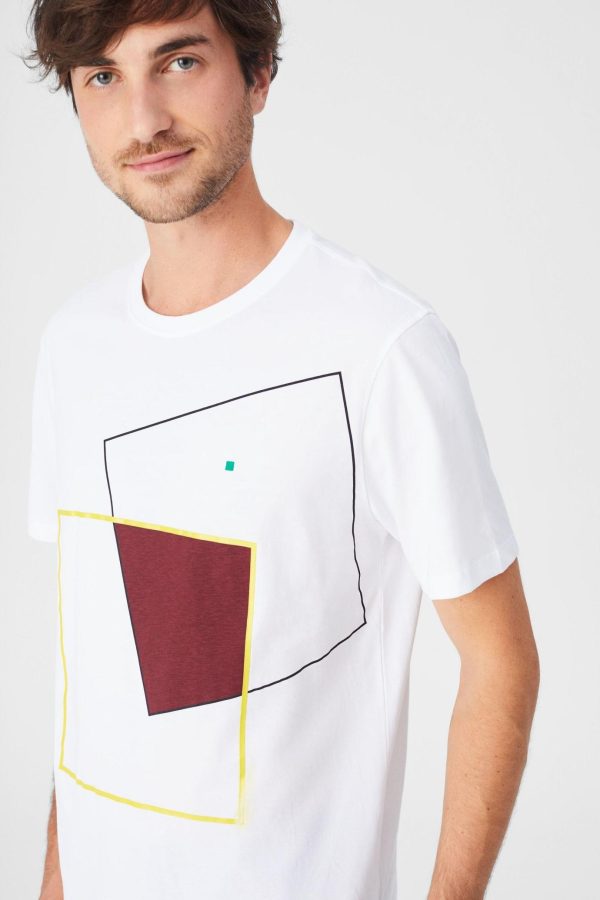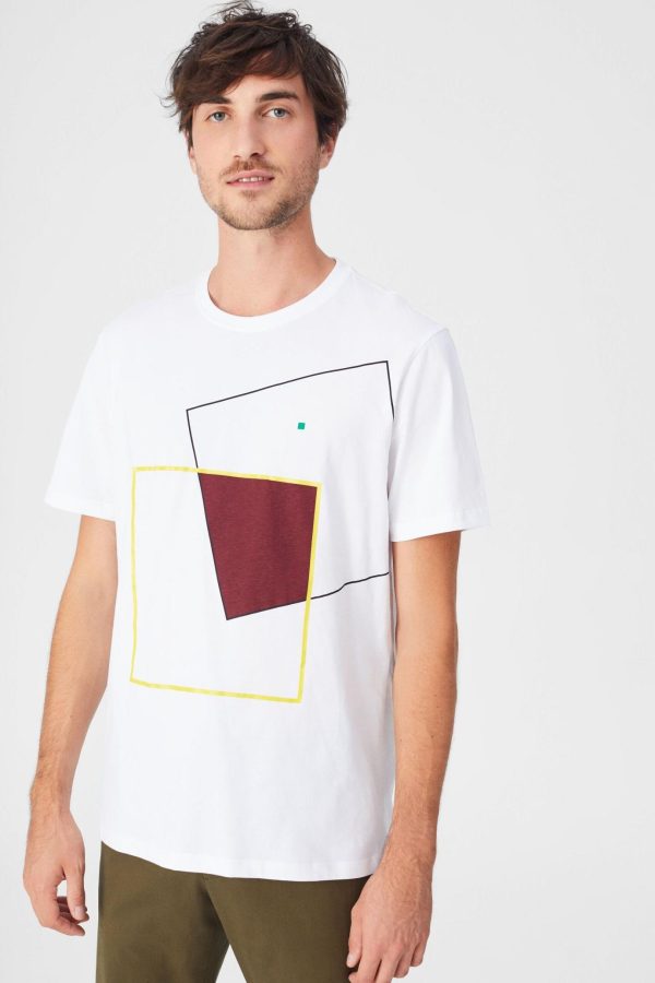 Regular fit t-shirt in cotton with a contrasting geometric cube print at the front with seamtape on inner collar. Crew neck and embroidered PG cube at the hem. Model is 187 cm | 6′ 2″ and is wearing a size Medium.
