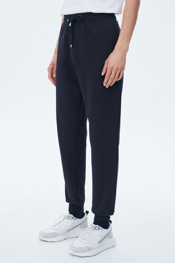 Jogging trousers in french terry stretch cotton. Elastic waist wih drawstrings and ribbed ankles. Two side pockets and two pockets in the back. Model is 187 cm | 6′ 2″ and is wearing a size Medium.
