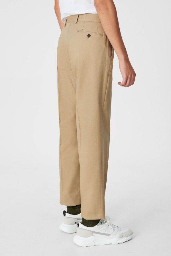 Relaxed fit chinos in structured stretch-cotton. Two on-seam pockets and two back buttoned welt pockets. Model is 186 cm | 6′ 1″ and is wearing a size 40.