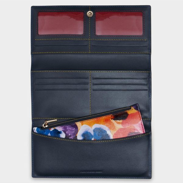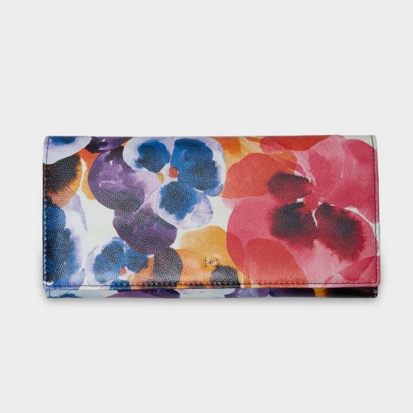 American wallet in leather with our “Piensa mal y acertarás” print and the metallic PG logo. Interior compartments for bills, cards and coins.