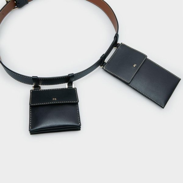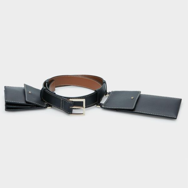Leather belt bag with two detachable pockets. Metallic buckle and contrasting stitching.