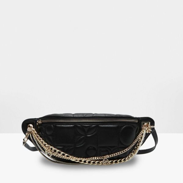 Belt bag in quilted leather with our PG Iconos Pop and detailed with chains a faux-pearls. Adjustable belt and zip fastening. Fully lined interior.