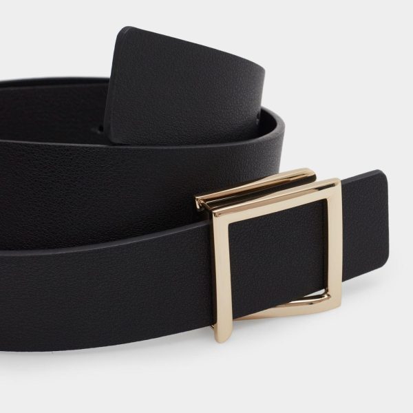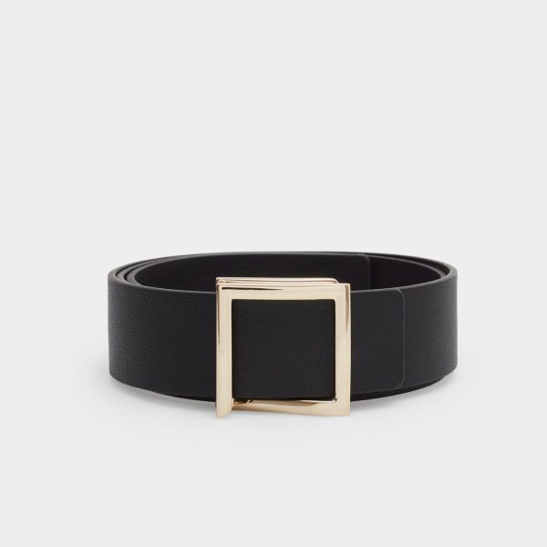 Leather belt with matching edging and a metallic cube-shaped buckle. Width: 3.6 cm