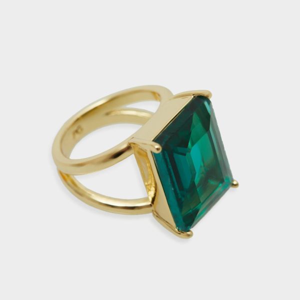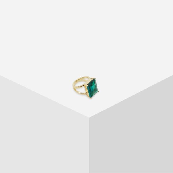 Gold plated ring detailed with a rectangle-shaped crystal bead.