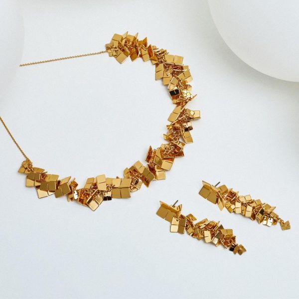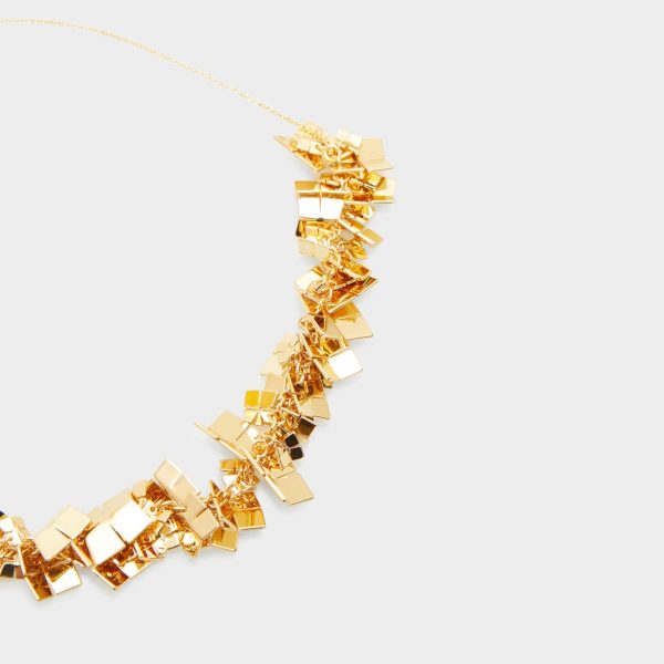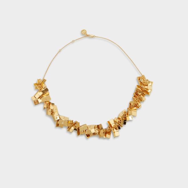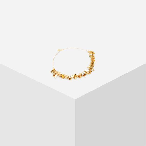 Gold plated necklace detailed with cube-shaped butterflies. Adjustable length and fastening.