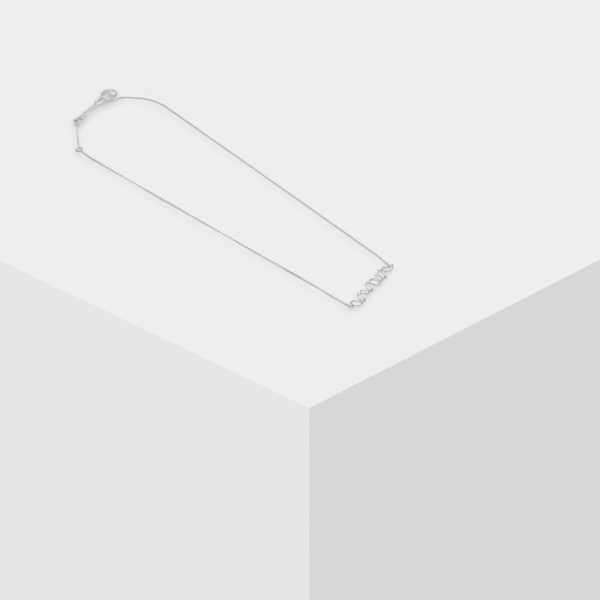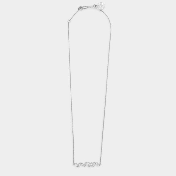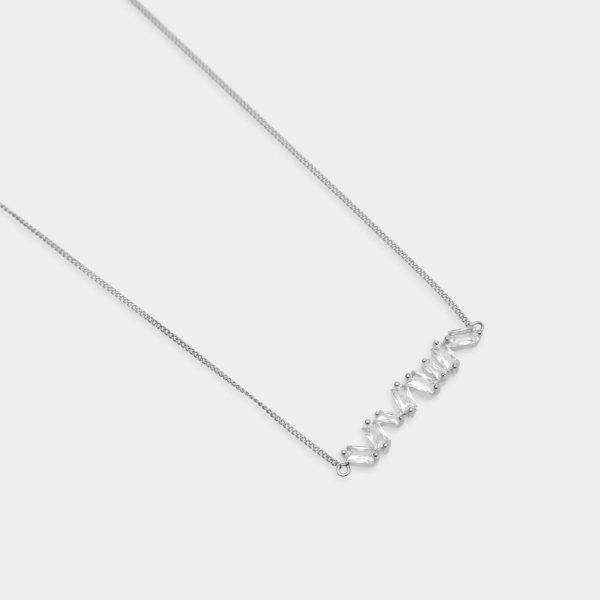 Rhodium plated necklace featuring a thin chain and a pendant detailed with crystal rectangles.