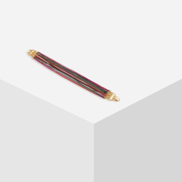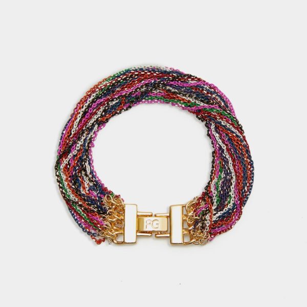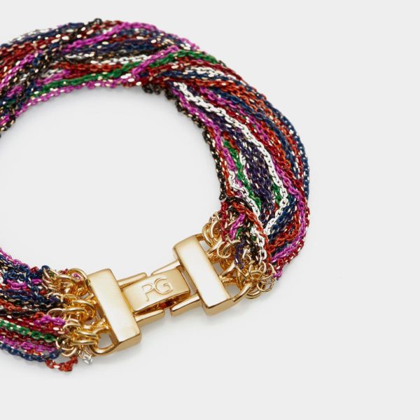Bracelet featuring several multicolor fine chains, customized with PG at the closure.
