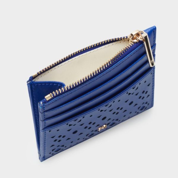 Card holder in cutout leather. Coin pocket with a zip fastening.