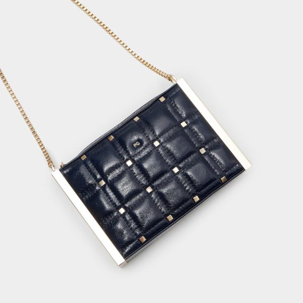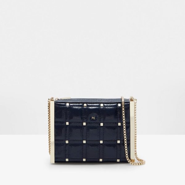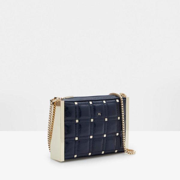 Rectangular bag in quilted leather detailed with studs and our metallic PG logo. Cross body chain strap, zip fastening and fully lined interior.
