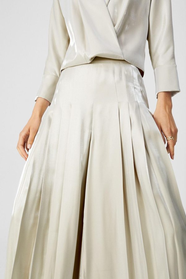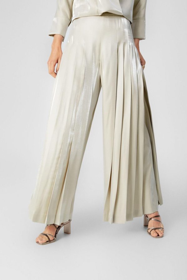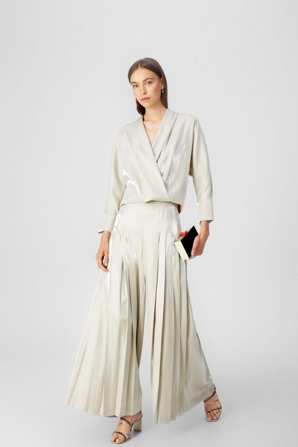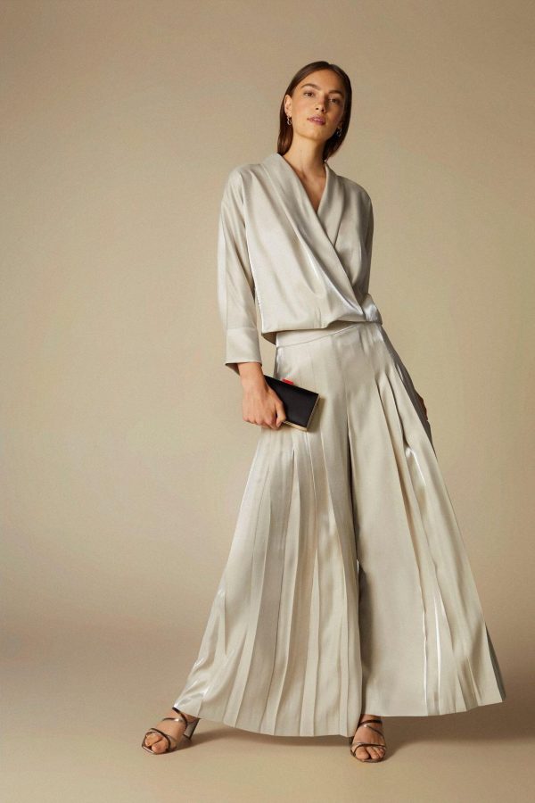 Palazzo trousers in pleated satin. Matching blouse sold separately. Model is 180 cm | 5′ 10″ and is wearing a size 38.