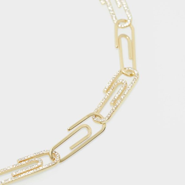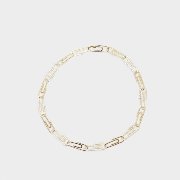 Gold plated necklace featuring a clip chain. Cube-detailed fastening.
