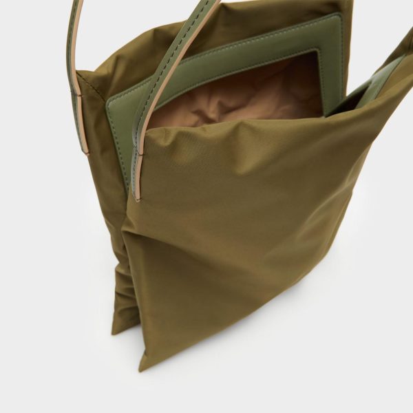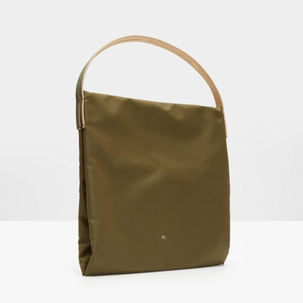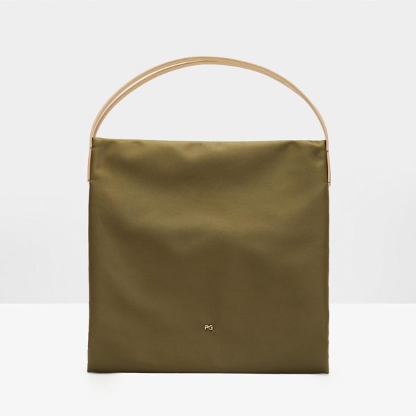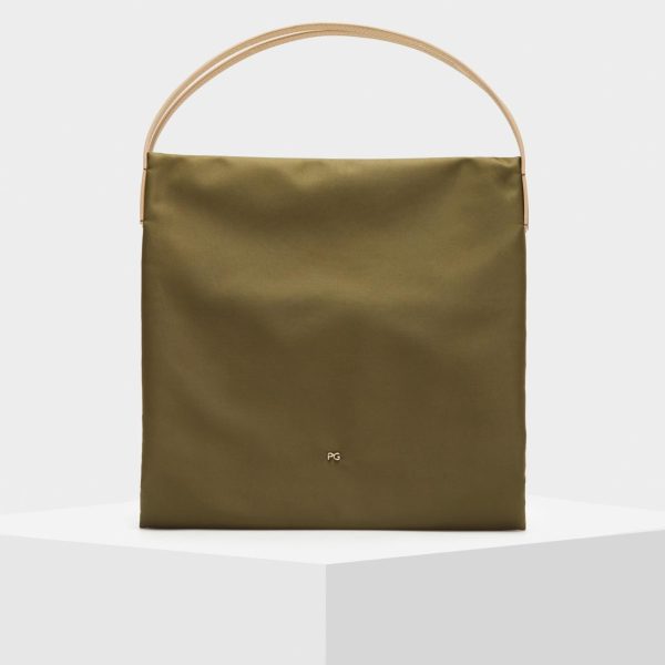 Shoulder bag in nylon with the metallic PG logo. Leather straps and magnetic fastening. Exterior pocket and two interior compartments with a divider zip pocket.