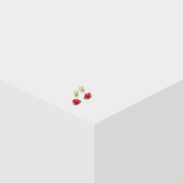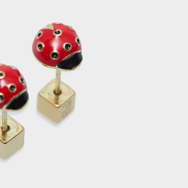 Gold plated earrings featuring enamelled ‘Catarina’ lady birds. Logo-engraved cube-shaped fastening.