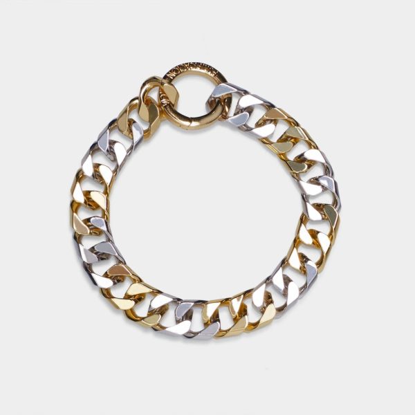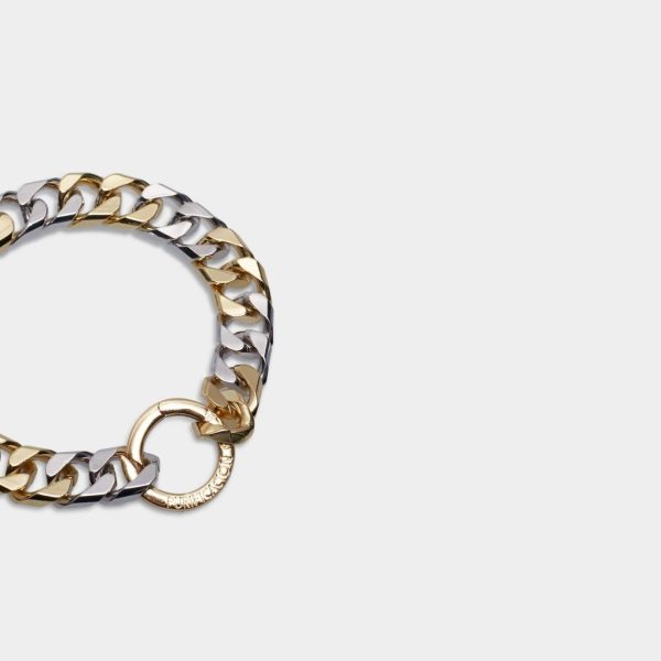Gold and rhodium plated bracelet featuring a chain that creates an optical effect of eights. Logo-engraved clasp for PGalphabet letters, sold separately.