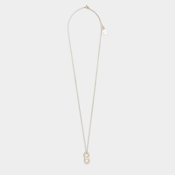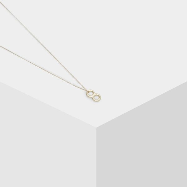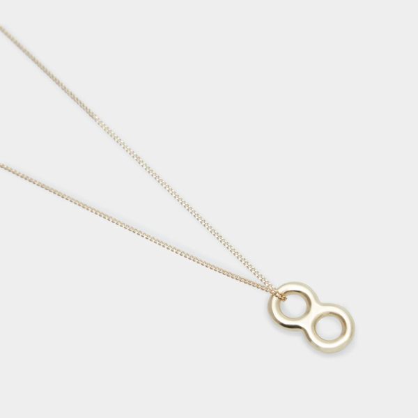 Gold plated necklace featuring a thin chain and our icon 8 pendant. Adjustable lobster clasp.