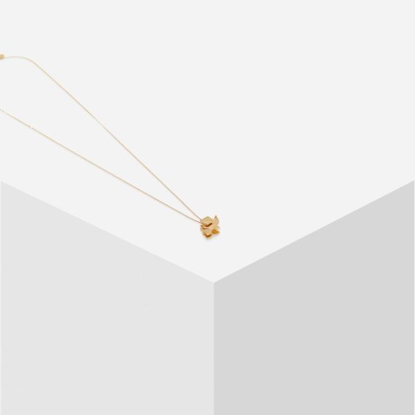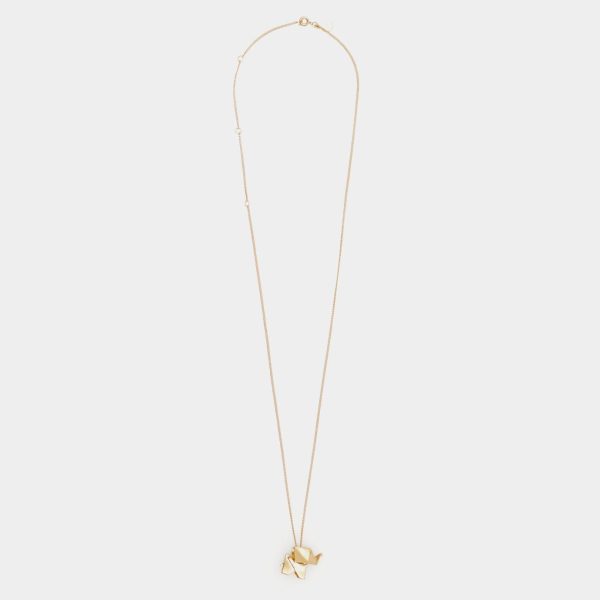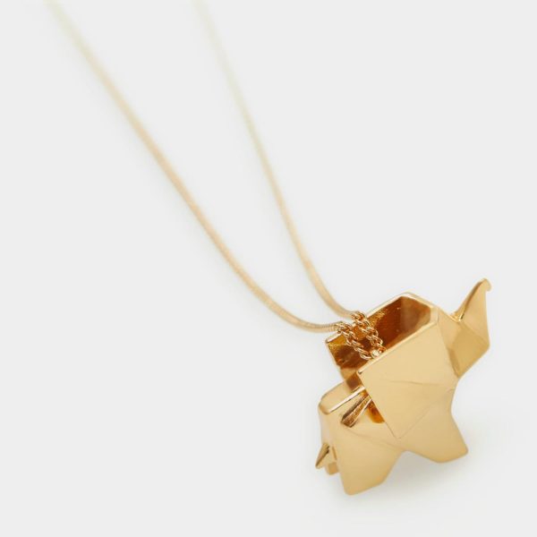 Gold plated necklace featuring a thin chain and an elephant-shaped origami pendant.