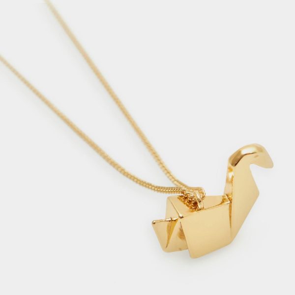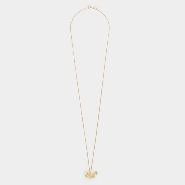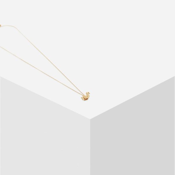 Gold plated necklace featuring a thin chain and a swan-shaped origami pendant.