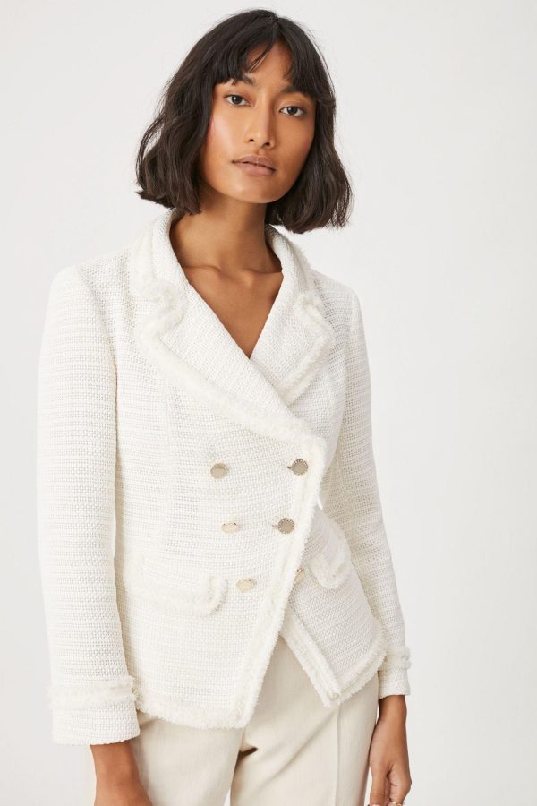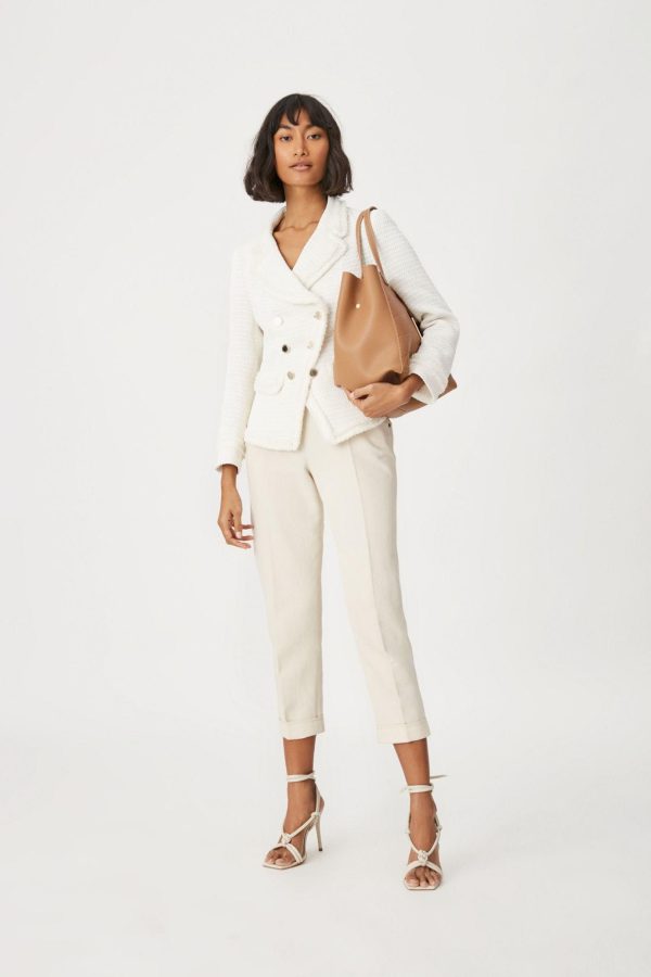 Women Purificación García Jackets | Woven Double-breasted Blazer White