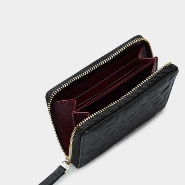 Japanese wallet in leather embossed with our PG’s icons Stamp. Zip fastening with matching tassel puller. Various interior compartments.