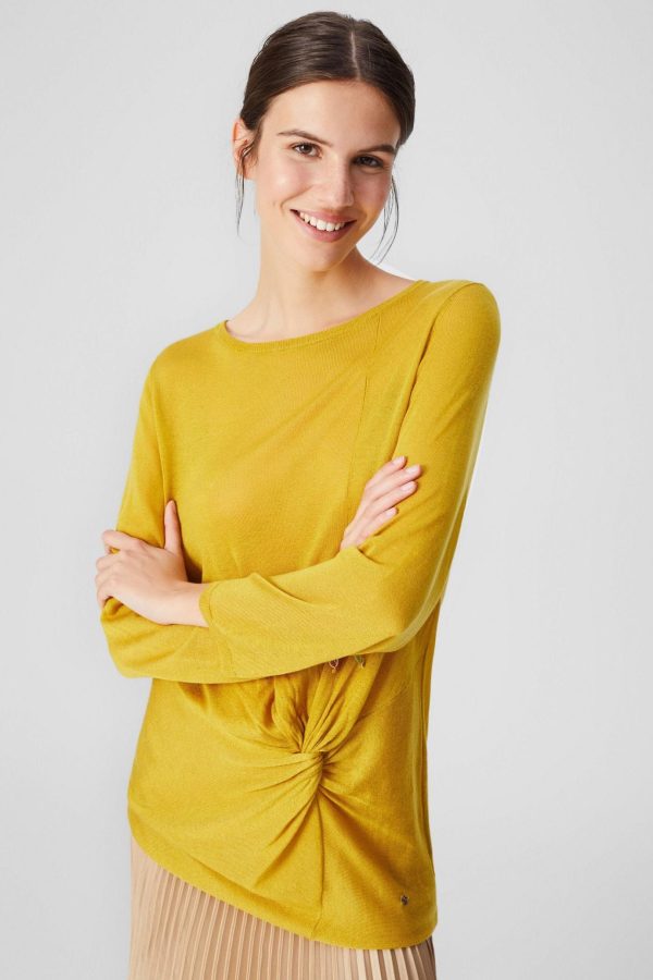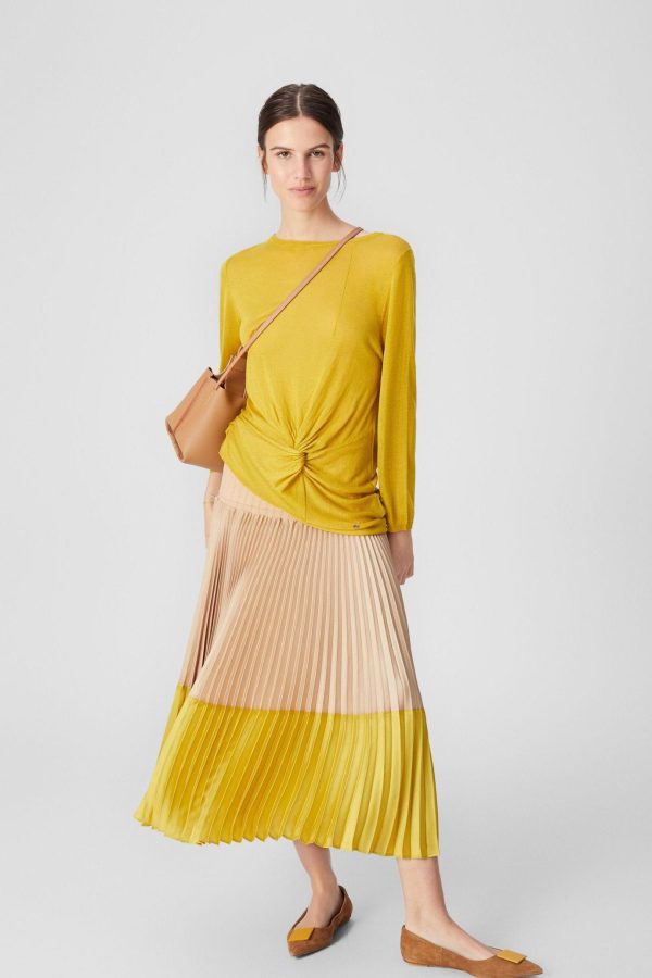Straight fit knit sweater with a knot-effect design. Boat neckline long sleeves and metallic PG logo at the hem. Model is 174 cm | 5′ 8″ and is wearing a size Medium.