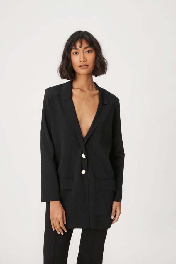 Longline blazer in stretch-knit. Notched lapels, shoulder pads and flap pockets. Matching trousers sold separately. Model is 179 cm | 5′ 10″ and is wearing a size Small.