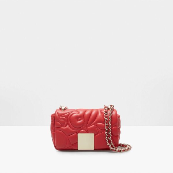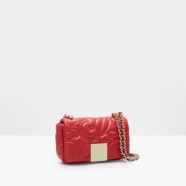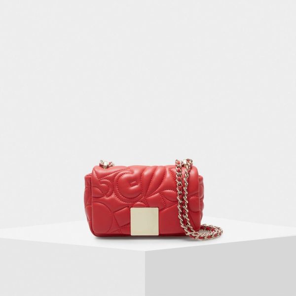 Cross body bag in pop embossed leather featuring our representative icons, geometric shapes and PG’s initials. Two-position chain and leather strap and snap fastening flap with a metallic cube plate. Fully lined interior with a zip pocket.