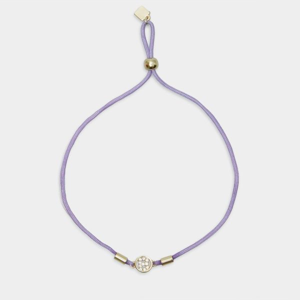 Cord bracelet detailed with a gold plated letter B and crystal beads. Adjustable fastening and logo-engraved cube.