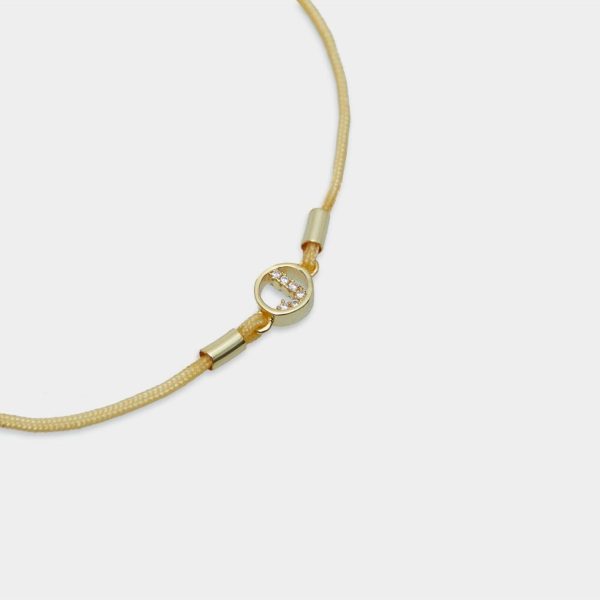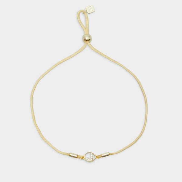 Cord bracelet detailed with a gold plated letter J and crystal beads. Adjustable fastening and logo-engraved cube.