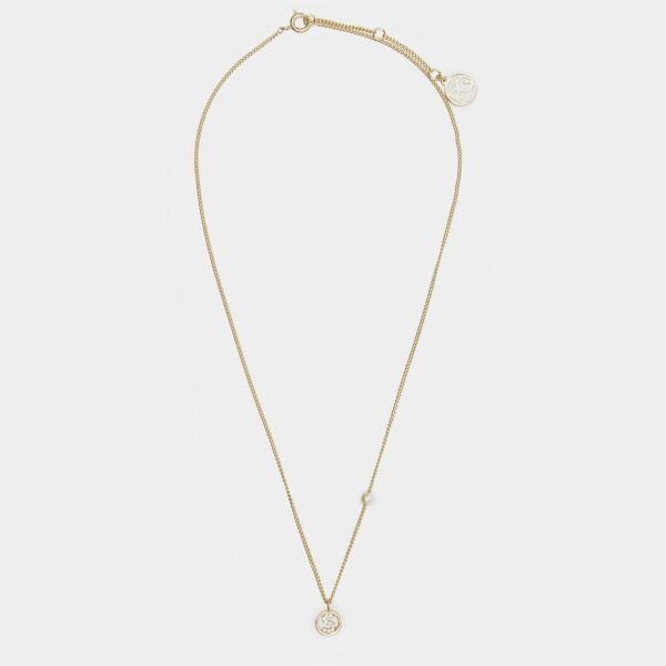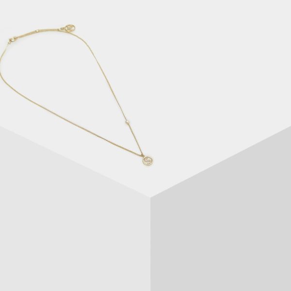 Gold plated necklace featuring a thin chain with a faux pearl and a crystal-embellished letter “S” pendant.
