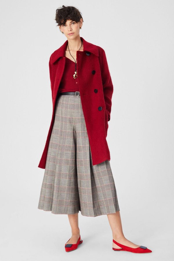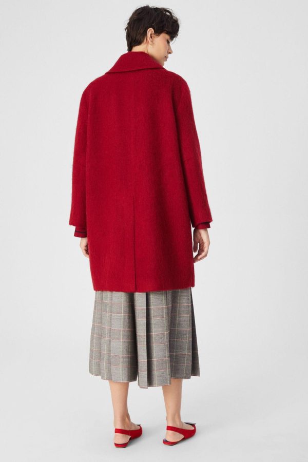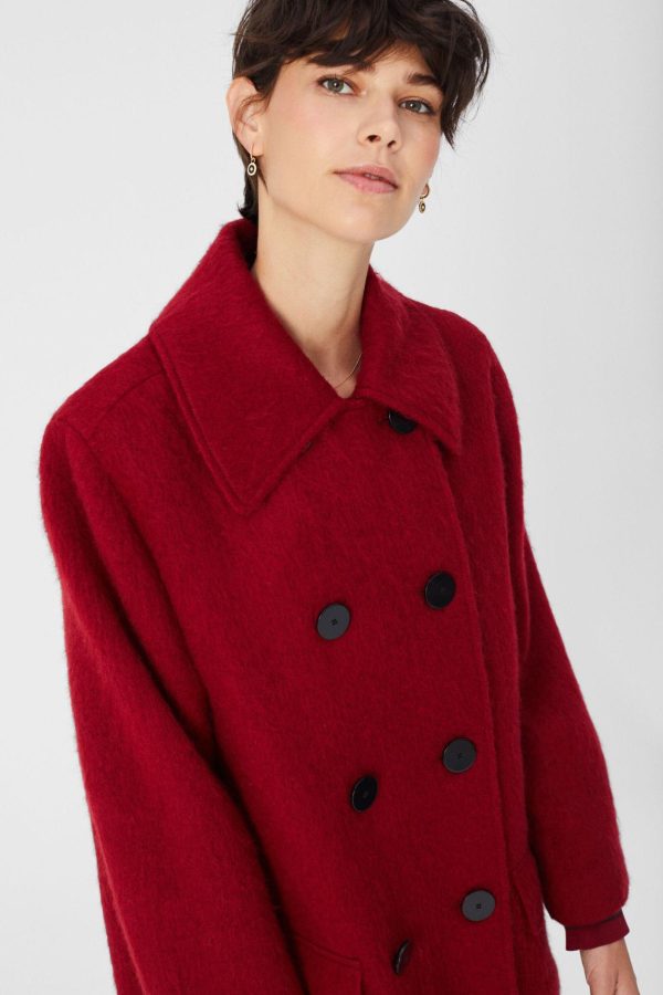 Double-breasted cocoon coat in alpaca wool-blend. Maxi spread collar and two front flap pockets. Model is 179 cm | 5′ 10″ and is wearing a size Small.