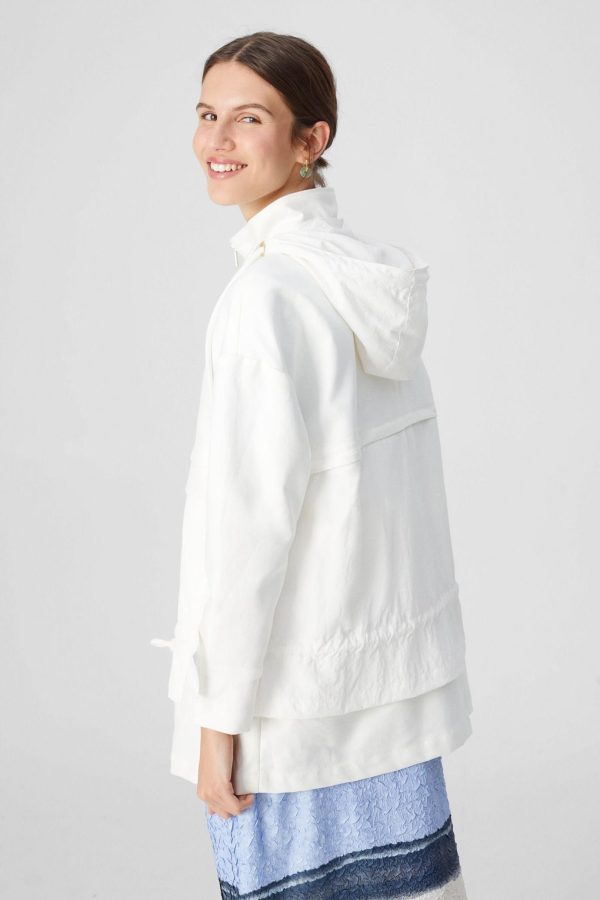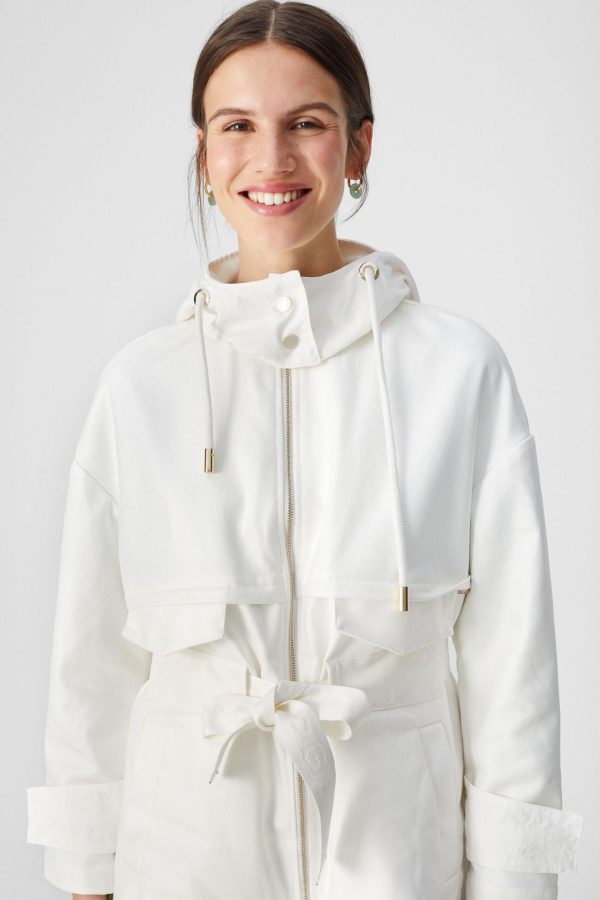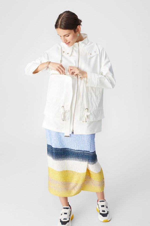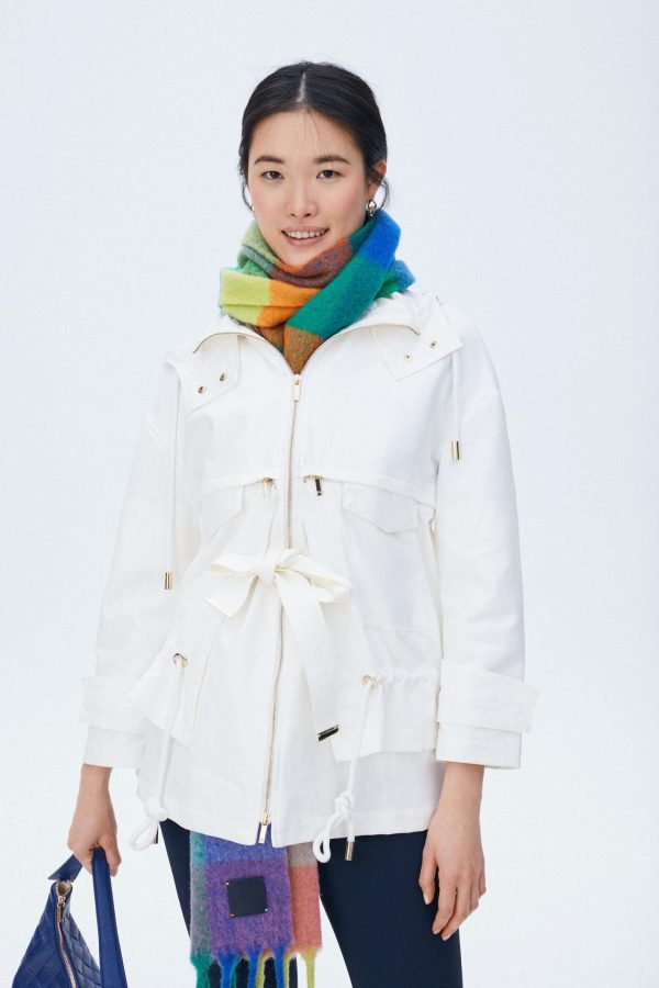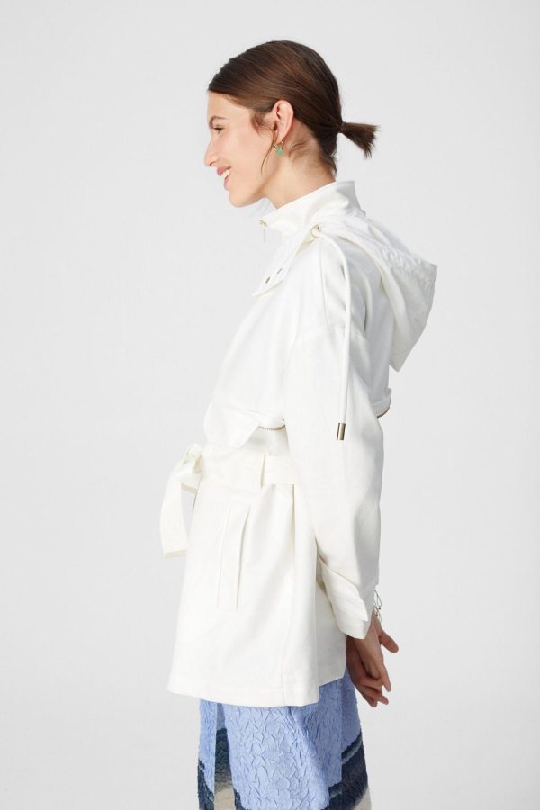 Straight fit jacket in shell cotton with detachable matching belt. Hoodie, zip fastening and adjustable elastic waistband. Two side pockets and two flap pockets. Model is 174 cm | 5′ 8″ and is wearing a size Medium