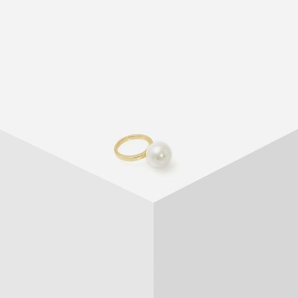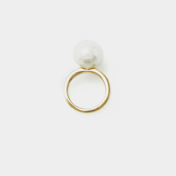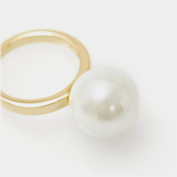 Gold plated ring detailed with a large pearl.