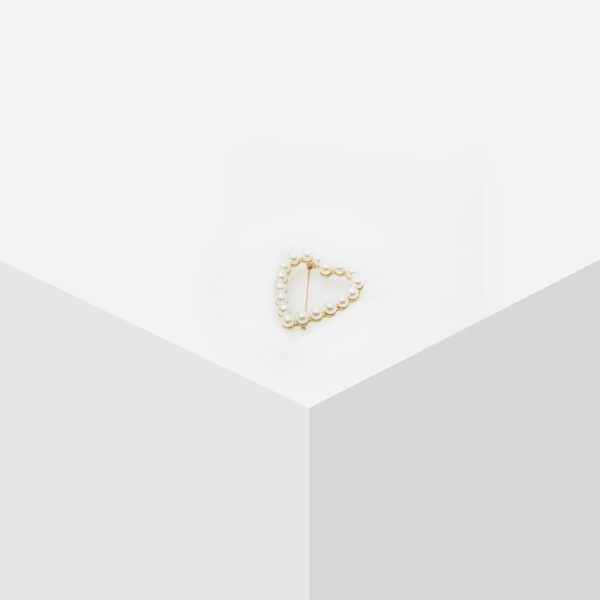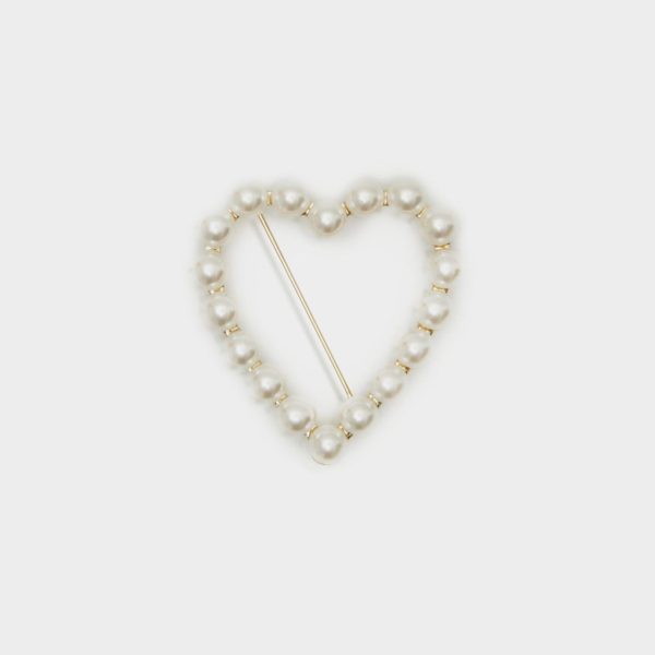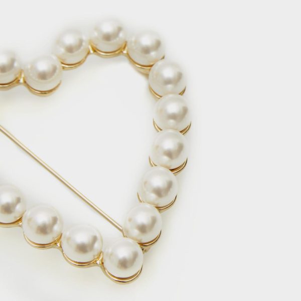 Gold plated heart-shaped brooch detailed with faux pearls. Pin fastening.