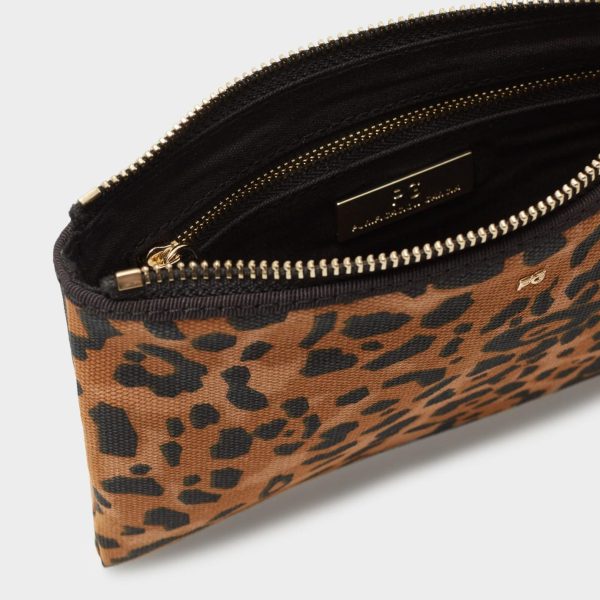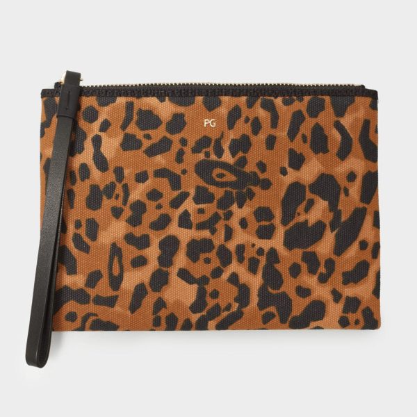 Large pouch in canvas with a leopard print and the metallic PG logo. Zip fastening and leather puller.
