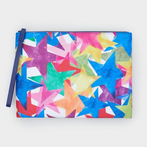 Large pouch in nylon with with our “Lluvia de Estrellas” print and the metallic PG logo. Zip fastening and leather puller.