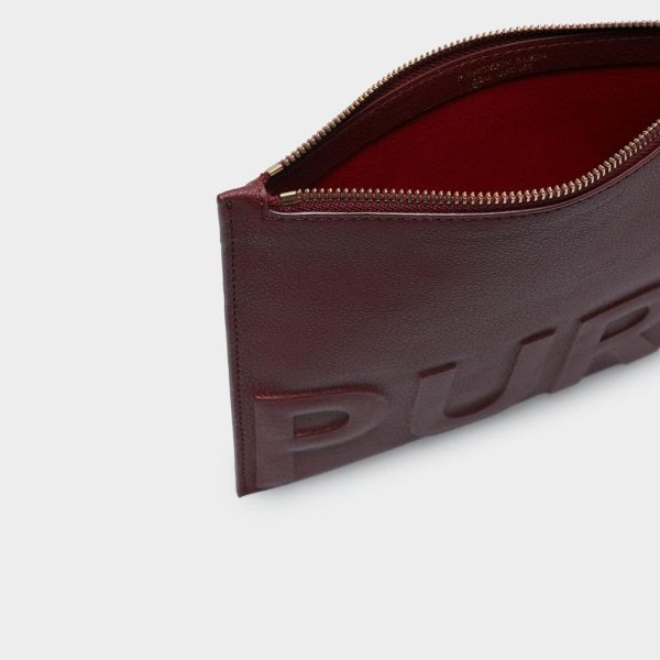 Large pouch in plain double-faced leather detailed with our PURE Pop. Zip fastening with a leather puller. Matching edging and unlined interior.
