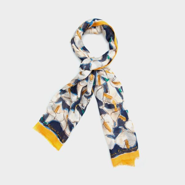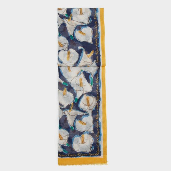 Women Purificación García Scarves | Cala Linen-blend Scarf Navy/white/yellow