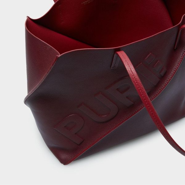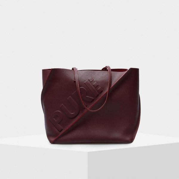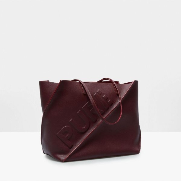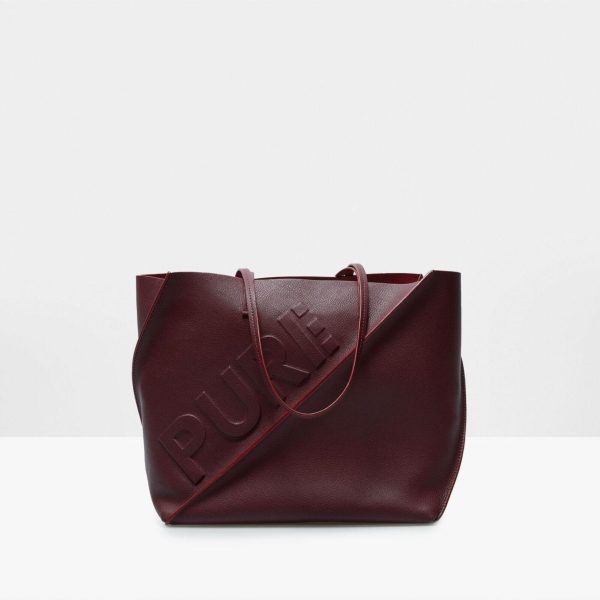 Shopper bag in double-faced leather with a geometric design and a pliable body. Matching shoulder straps with matching edging and PURE embossed detail at the front.
