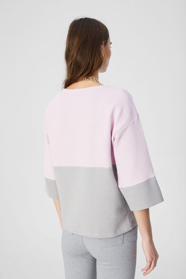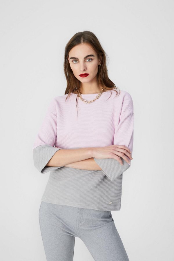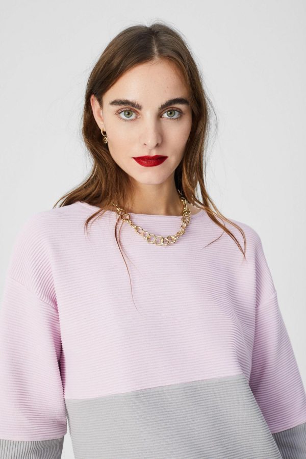 Straight-fit top in stretch-cotton ottoman with a two-tone design. Round neckline and 3/4 sleeves. Model is 179 cm | 5′ 10″ and is wearing a size Medium.