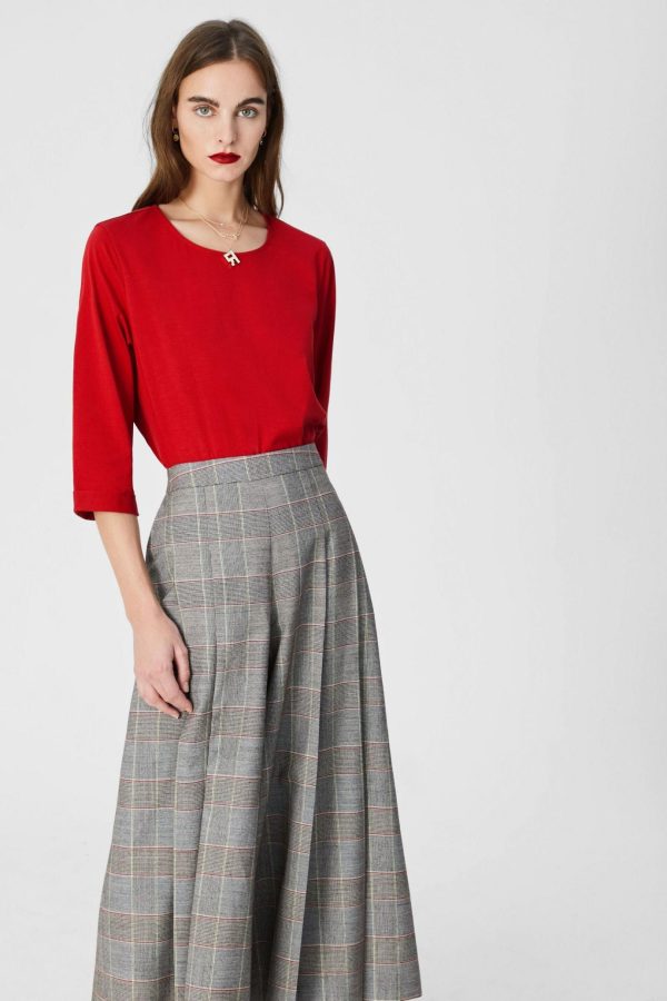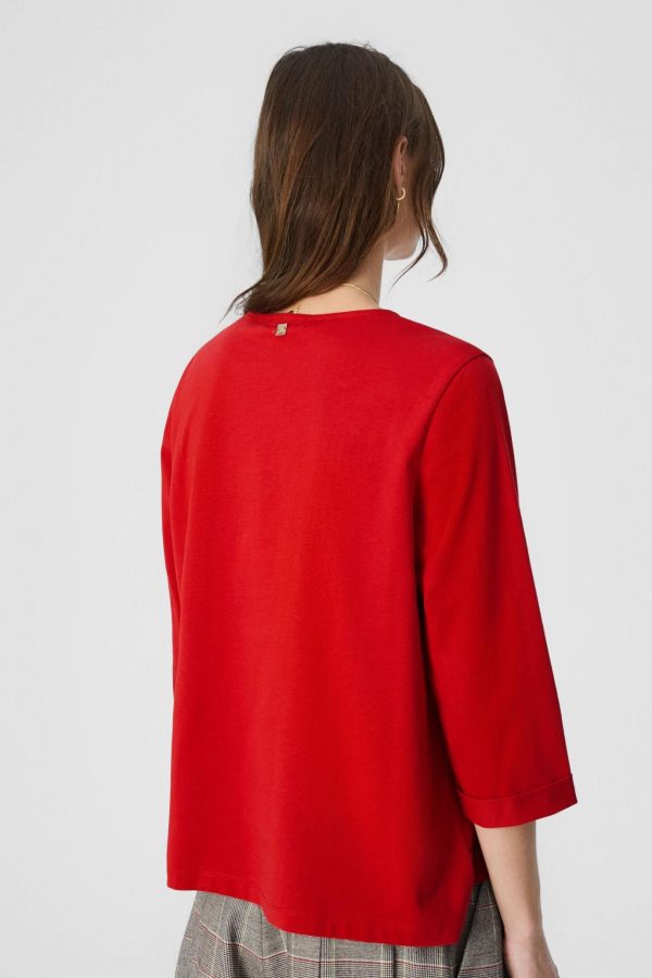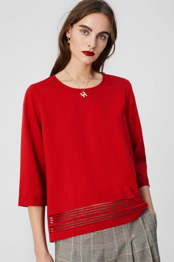 Straight fit top in cotton with a semi-transparent band at the hem. Round neck, 3/4 sleeves andmetallic PG logo at the back. Model is 179 cm | 5′ 10″ and is wearing a size Medium.