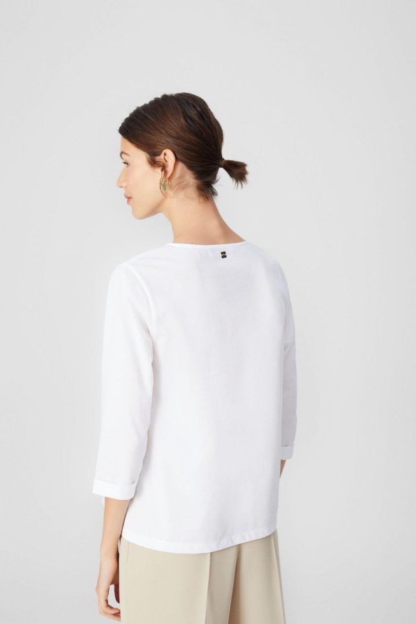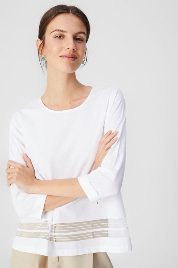 Straight fit top in cotton with a semi-transparent band at the hem. Round neck, 3/4 sleeves andmetallic PG logo at the back. Model is 174 cm | 5′ 8″ and is wearing a size Medium.